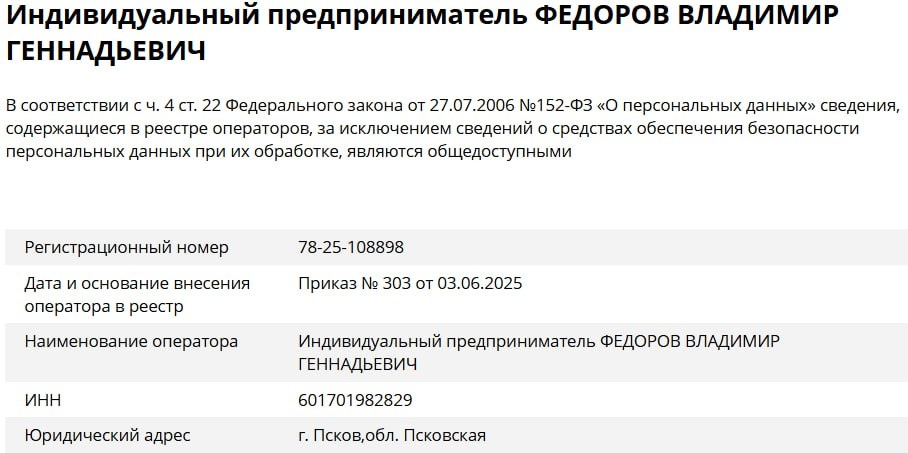 Кстати, реестр операторов доступен по ссылке 🔗 https://pd.rkn.gov.ru/operators-registry/operators-list/