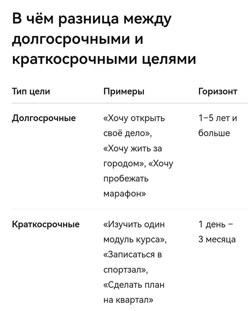 Представьте себе мореплавателя. Он знает, куда хочет приплыть — к далёкому острову. Это его долгосрочная цель. Но чтобы туда добраться, нужно каждый день определять маршрут, сверяться с компасом, реагировать на штормы и менять курс. Это — краткосрочные цели. Без одного не работает другое: если нет острова — лодка кружит по волнам. А если нет руля и карты — мечта так и остаётся миражом на горизонте. Почему важно связать одно с другим