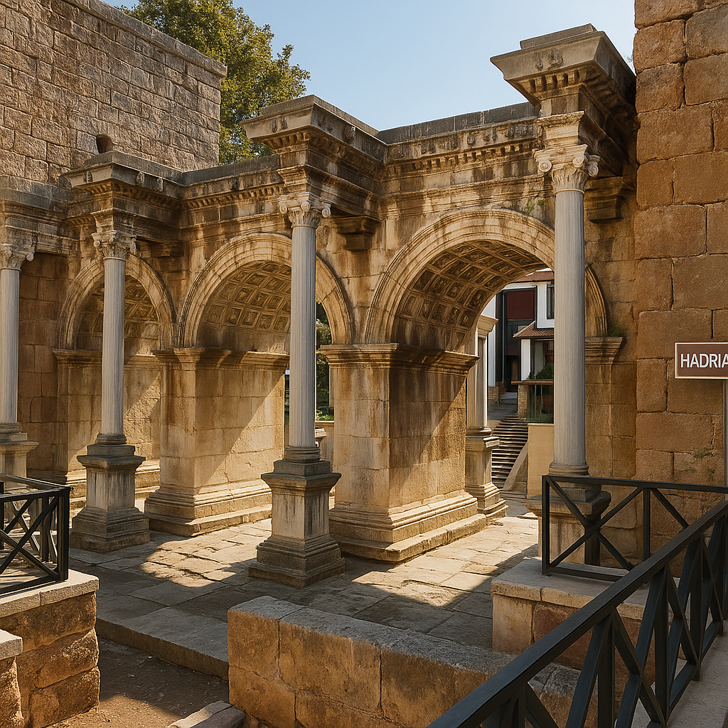 В самом сердце старой Анталии, там, где современные улицы встречаются с древними камнями, возвышается величественная Арка Адриана — словно портал, ведущий прямиком в античную эпоху.