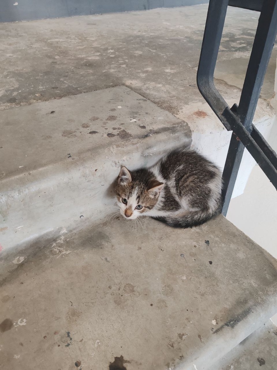 Проспект Строителей дом 3. Черная лестница второй этаж 3 парадная . Такое чувство что подкинули. Пока что приютил к себе, но у меня и так двое животных. Если до завтра хозяин не найдётся, то может есть добрая душа, кто возьмёт к себе хотя-бы временно. Из предложки ДТП и ЧП Кудрово