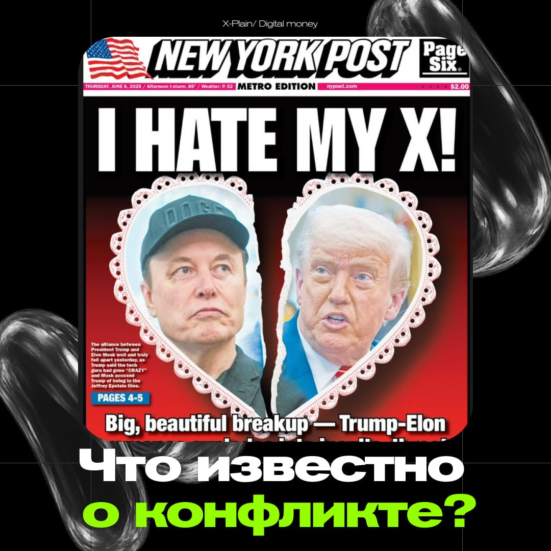 Маск: Называет Трампа лжецом, подчеркивает свою роль в его избрании и критикует законопроект за рост дефицита бюджета до $2,5 трлн. Ссора продолжается в соцсетях X и Truth Social.