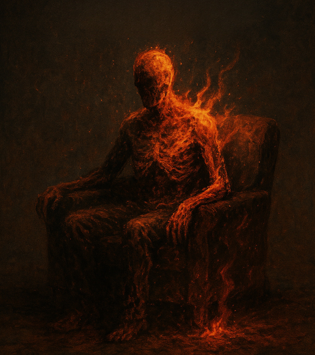 В ту ночь Воронцов снова проснулся в холодном поту. Грудь горела изнутри, как будто кто-то развёл костёр прямо под рёбрами. Он встал, шатаясь, и подошёл к зеркалу. В глазах отражался огонь — живой, пульсирующий.