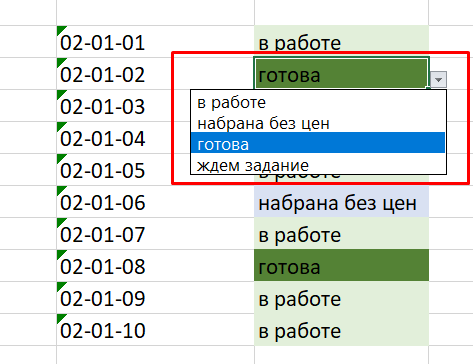Продолжаю серию статей как ускорить работу с помощью легких функций. Ранее разобрали функции Excel 2 часть. Как правило существует несколько этапов готовности смет: Для ведущего сметчика по объекту важно отслеживать статус каждого из сметы. Когда людей много - это нужно делать аккуратно и чтобы всем было понятно. На помощь этому придется "Выпадающий список". Как его настроить? №1 Делаем список таких статусов, назначаем им цвета (для удобства, но это не обязательно) №2 Напротив каждой сметы, заранее созданного списка в Excel настраиваем правила, при которых коллеги смогут отмечать только из этого списка. Правило строгое: Далее, настроим, чтобы при выборе статуса он закрашивался в выбранный вами цвет, для этого: Как итог: Статусы закрашены: Нужно настроить правило, чтобы в список со сметами автоматически выводилась цифра по готовности всех смет внизу и считался процент: Что для этого требуется: СТАТИСТИКА готова 🧨 Подписывайся 💌 если было полезно 💖 Рекомендую посмотреть статьи: