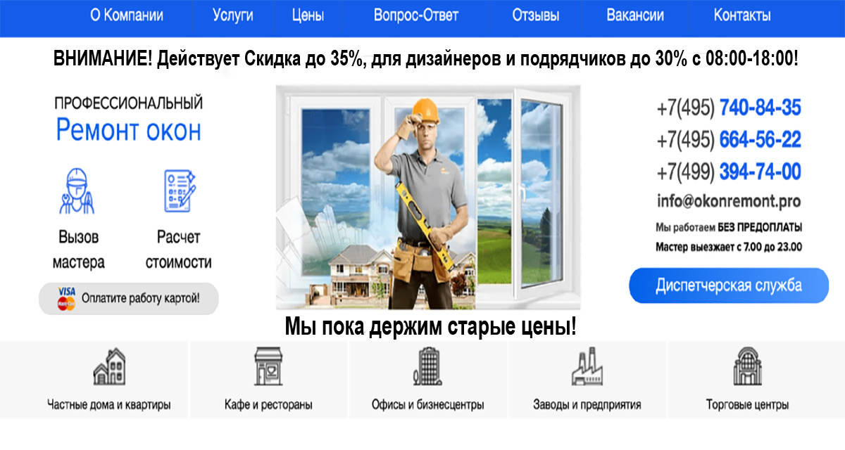 — Вы не останетесь наедине со сквозняком или разбитым стеклом ни в выходные, ни в праздники. - Наши операторы примут Вашу заявку на срочный ремонт и утепление окон в любое время дня и ночи!
