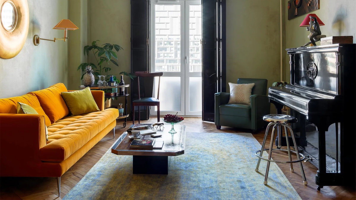 Квартира с характером досталась дизайнеру Алёне Сковородниковой: каждый элемент отделки приживался не сразу, поэтому приходилось вносить правки или вовсе переделывать всё с чистого листа. Но сдаваться никто не собирался: в итоге вышел ретроинтерьер на зависть советским чиновникам и знаменитостям тех лет. Часть предметов осталась от прошлых владельцев: столовый комплект отреставрировали и дополнили латунными элементами, идеально вписывающимися в советскую эстетику. Поскольку заказчики не планируют много готовить, на кухню выбрали компактный гарнитур из ретролинейки Smeg. Медную столешницу со скрытой подсветкой решили не покрывать лаком, чтобы она естественно и благородно старела, дополняя общий винтажный антураж. В длинном коридоре, типичном для сталинок, сохранились оригинальный деревянный паркет и лепнина. Краску с обоями долго подбирали так, чтобы они создавали ощущение советской квартиры, не видавшей современного ремонта. Все подтёки и разводы на стенах и мебели — работа опытных дек