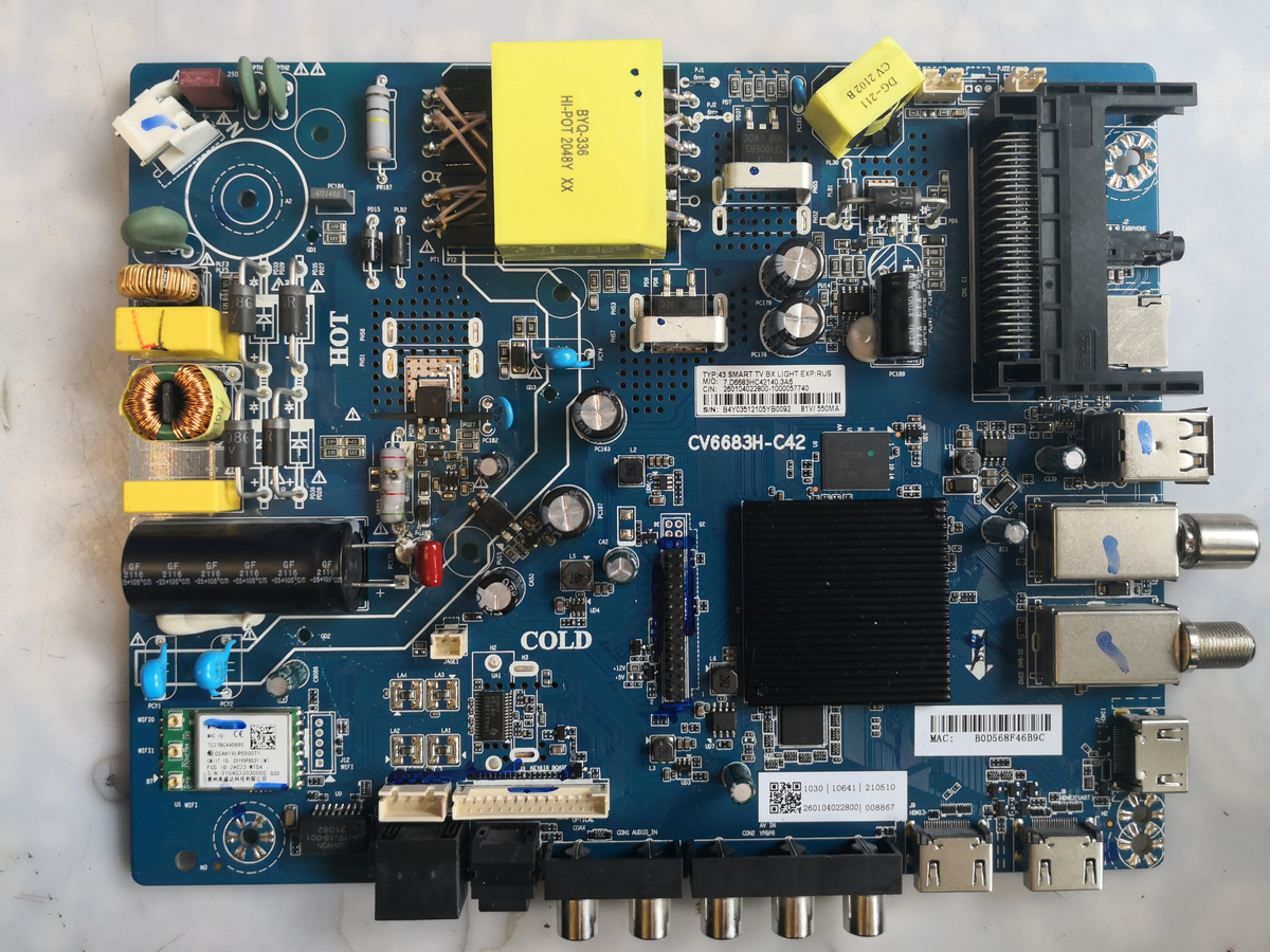 Всем здравствуйте! Сегодня у нас на ремонте не весь телевизор, а только майн плата CV6683H-C42 с взорванным блоком питания.