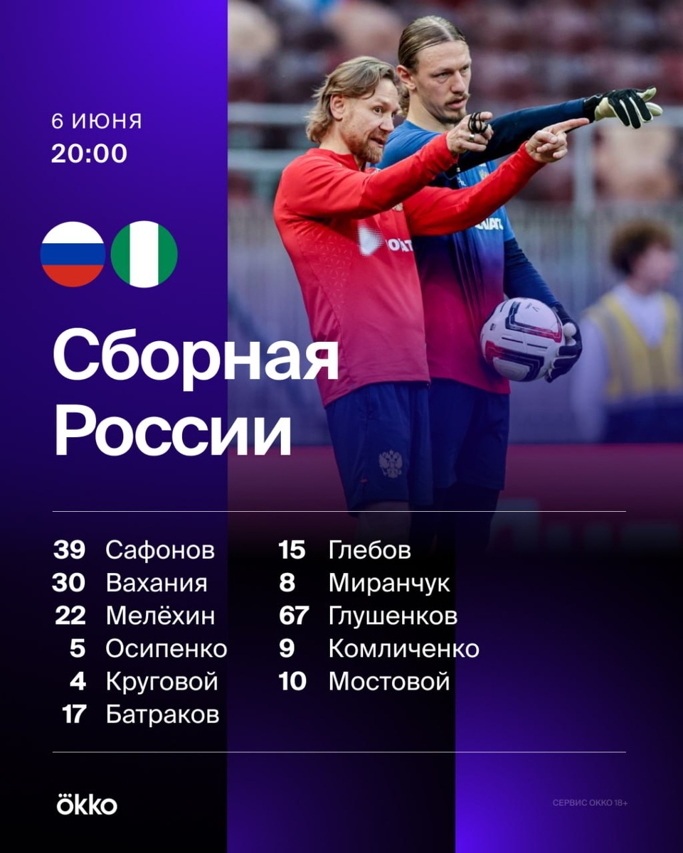 🇷🇺 Состав наших парней на матч против Нигерии. Мотя сегодня капитанит.
