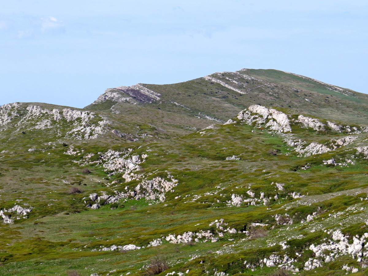 Мы немного приспустились, спрятались от ветра и уселись рассматривать верхнее плато и думать, куда же мы хотим. Ведь мы здесь впервые! Плато просторное, открытое и без леса. Все тропинки видно, как на карте. Все кажется рядом, на расстоянии вытянутой руки. Ох, как же это все обманчиво! Вдалеке виднеется вторая вершина Чатыр-Дага – Эклизи-Бурун, высотой 1527 метров. Была мысль, что вот поднимемся, пройдем по ровненькому до второй вершины и спустимся. Но…. Не все так просто! Но, мы то этого еще не знаем! Чатыр-Даг – гора загадок и сюрпризов! Пока мы рассматривали плато, несколько групп людей пошло по тропе сзади нас и исчезло, только один человек появился вдалеке еще раз. Туда и пойдем! Правда, по пути другая, более пологая тропинка нас увлекла слегка в сторону. И вдруг, за очередным поворотом, это, кажущееся простым плато, начинает меняться просто на глазах! Откуда-то вынырнули белокаменные горы, заросшие можжевельником, появились глубокие овраги! Казалось, что все плато вспучилось