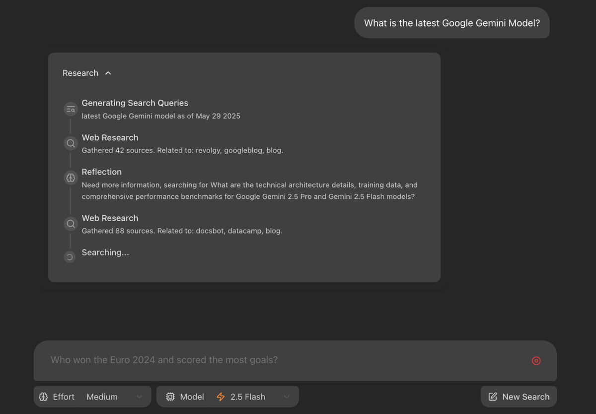 Google внезапно выложил в открытый доступ свой DeepSearch! Это интеллектуальный агент, который поэтапно осуществляет поиск данных в сети, обрабатывает найденную информацию и формирует детализированный отчет. Проект включает пользовательский интерфейс (React) и серверную часть (LangGraph). Для запуска потребуется API ключ Gemini (можно получить здесь бесплатно), а также API LangSmith (доступен по ссылке). Отличная возможность! 😊 INCUBE.AI | ПОДПИСАТЬСЯ