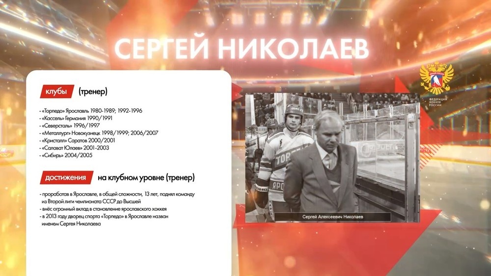 В числе тех, кто сегодня оказался включен в зал славы отечественного хоккея, оказался наставник, который начал большой хоккей в Ярославле. Сергей Алексеевич Николаев или легендарный Сеич руководил ярославским «Торпедо» в течение 13 лет. Он поднял команду из второй лиги в высшую лигу СССР, а потом тренировал ярославский коллектив в первых чемпионатах России. Николаев покинул «Торпедо» в 1996 году, а на следующий сезон команда впервые стала чемпионом России по хоккею.
