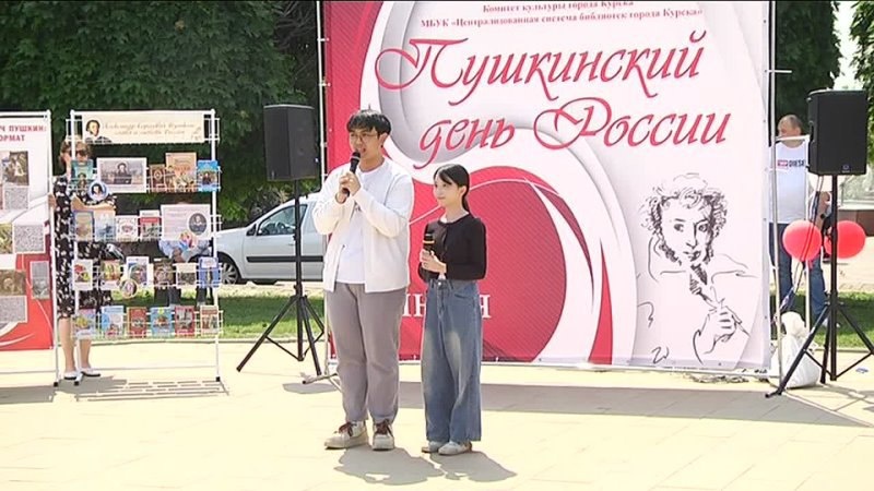 Куряне отметили День русского языка и День рождения Пушкина «Курск читает Пушкина» - под таким названием на Театральной площади областного центра, 6 июня, прошло мероприятие в честь Дня рождения великого русского поэта и Дня русского языка в России. Локация с интересными фактами из жизни литератора, творческие номера, фотозоны книжно-иллюстративная экспозиция, интерактивы, мастер-классы. И конечно же, чтение произведений Александра Сергеевича. При чем, отметим, что декламировали стихи поэта и те, для кого русская речь не является родной. Про «кота учёного», «золотую рыбку», «Онегина с Татьяной», «Руслана с Людмилой» и «Где же всё-таки кружка?», расскажем далее. https://vk.com/video-91940458_456253223