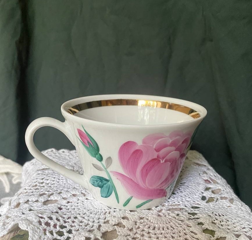 Казалось бы странный вопрос про подарки. Хорошо ли это? Конечно хорошо, особенно когда это подарок от продавца фарфоровой посуды. Со мной такое случается, но редко. И вот случилось. А во что это вылилось – в хорошее или плохое – решайте сами. Попросила меня подруга купить приглянувшуюся ей плетеную фаянсовую сухарницу на Мешке. Покупать посуду меня уговаривать долго не надо. Сказано – сделано. А если я все равно покупаю, то почему бы у этого продавца и для себя что-нибудь не присмотреть? Нашла среди его лотов блюдце с розочкой, которое должно было подойти к моей чашке с розочкой, тоже купленной на Мешке и тоже «заодно». Покупала чашку к имеющемуся у меня блюдцу и еще одну прихватила. Про историю с розочками писала здесь. Покупка тогда была не очень удачная – чашка не подошла к блюдцу, да еще и оказалось, что они разных заводов, несмотря на то, что розочки были идентичны. Но чашка такая красивая! А блюдце еще найдется. И вот продолжение истории в «жутких» розочках. Жутких – потому что