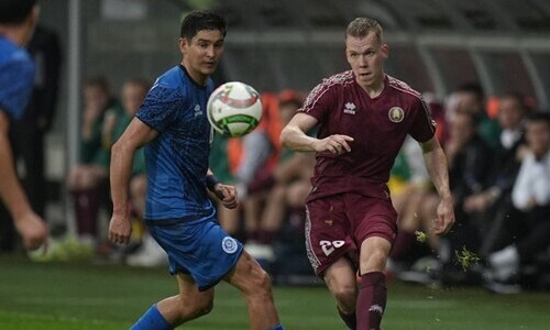 Гости же в атаке делали упор на верховые передачи, выигрыш единоборств и дальнейшее развитие атаки по ситуации. Нельзя сказать, что такой план был эффективен, но команда из Казахстана вполне могла открывать счет, однако сначала костьми перед воротами лег Павел Забелин, а добивание у соперника не вышло.