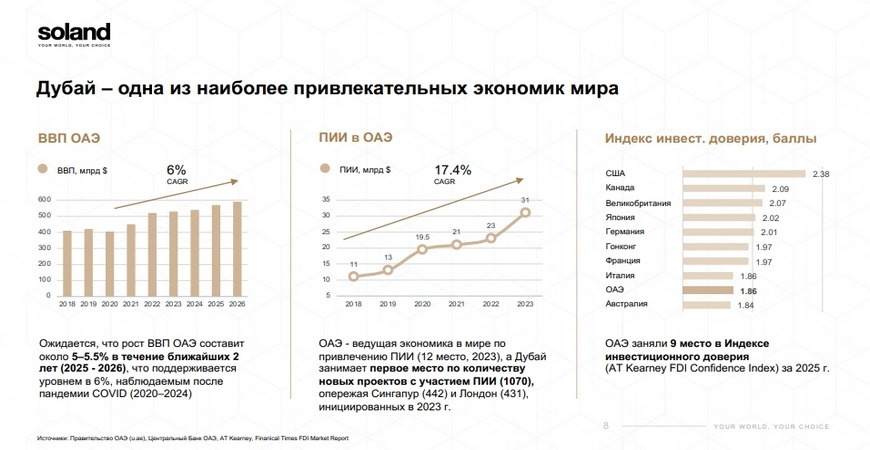 Средний рост ВВП Эмиратов после Covid – 6%. Дубай с 2023 года мировой лидер по объему прямых иностранных инвестиций в новые строительные проекты – обошел и Сингапур, и Лондон.