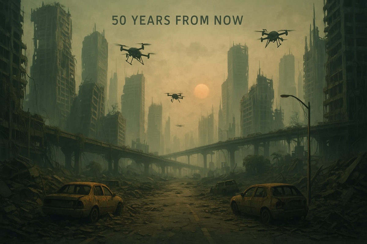 Попросил ИИ нарисовать, как будет выглядеть мир через 50 лет