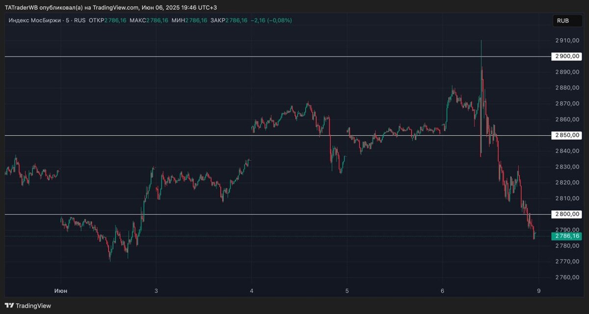 👉 ИНДЕКС ВСЕХ НАКУКАНИЛ? Что происходит? Как будет дальше? 📝 С открытия рынок пытался подрасти, как бы продолжая закладывать понижение ставки и в итоге на оглашении он был около максимальных отметок, а значит ждать какого то сверх роста стоило бы ТОЛЬКО при снижении ставки на 2%. В итоге после решения о снижении на процент инструменты дали символический импульс, после чего пошел фикс на факте, причем такой, что индекс закрылся ПОД 2800, хотя был выше 2900. Это само собой является признаком слабости и ничего позитивного и лонгового в этом нет. Тем более, когда последние несколько дней индекс удерживал 2800, а сегодня пробил так, как будто того уровня и не было. Что ждать дальше? ✅ Если говорить про ближайшее будущее, то ШОРТИТЬ сейчас ТОЧНО не стану! Это уже ТОЧНО поздно!!! Логичнее всего сейчас искать точку входа на отскок. Негативные настроения в понедельник уже пропадут и такого падения с огромной вероятностью не будет. Жду отскока ММВБ в сторону 2810 - 2820, а дальше уже будем с