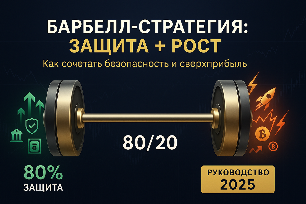 Барбелл-стратегия — это революционный подход к инвестициям, сочетающий максимальную безопасность (80-90% капитала) с высокорискованными ставками (10-20%). Такая структура защищает от катастрофических потерь и одновременно дает шанс на сверхприбыль.