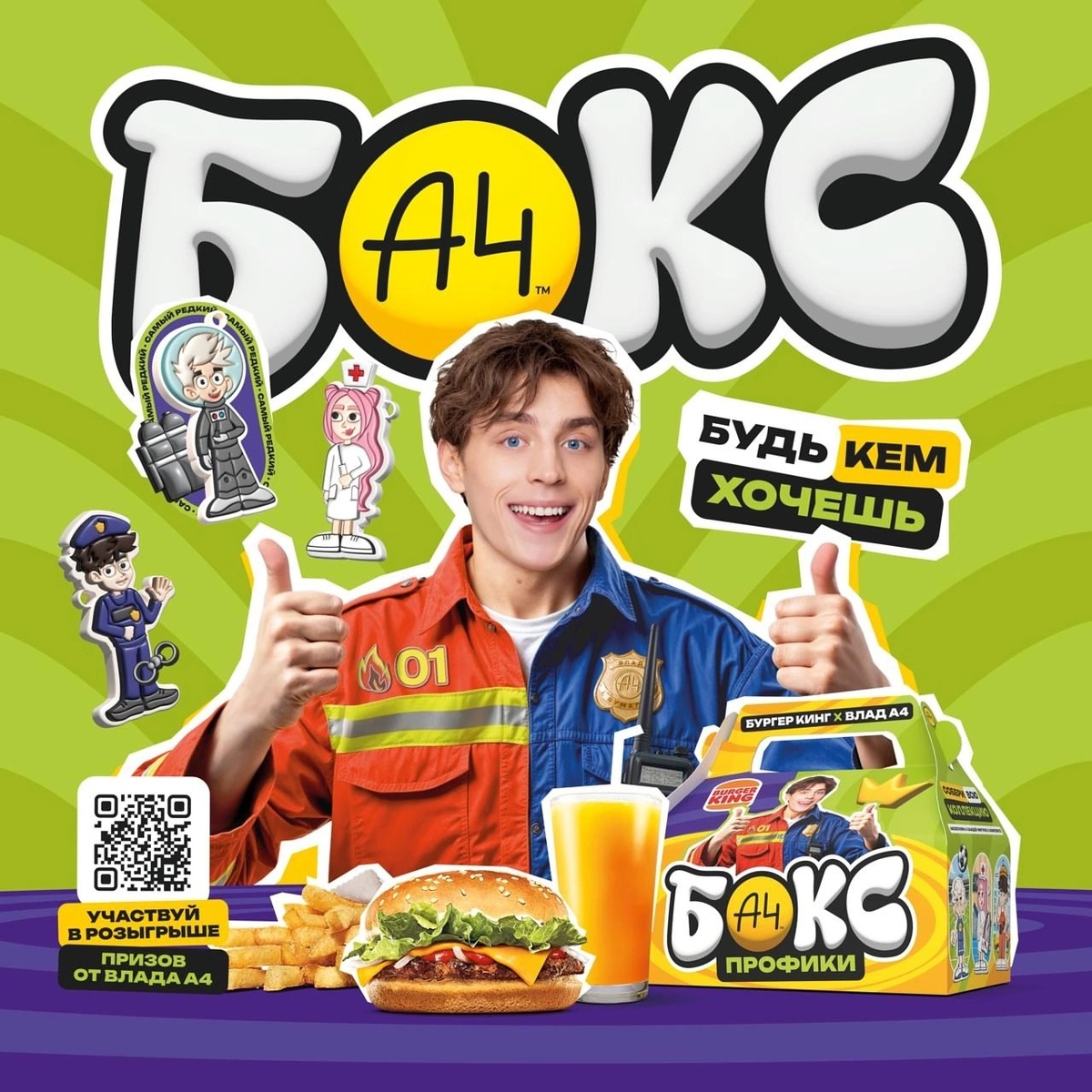 🥘 Новый А4 Бокс! *пауза для криков радости В этот раз у нас в боксах собрались Профики. Выбирай любое комбо: Просто А4 Бокс, обычный бокс как и раньше и сюрприз-фигурка с разными профессиями. Бокс с мороженым, все тоже самое и мороженое. И даже А4 Бокс и полная коллекция Профиков — вот это ничего себе. Самый топ — А4 космонавт, который светится в темноте. Так круто собрать всех в А4 Городе, можно еще выиграть iPad и другие призы от Влада. Иди в БК, заказывай доставку и будь кем захочешь с А4 Боксом! 📶 Категория: Ресторан 🏢 Кафе Бургер Кинг 📍 г. Чехов, ул. Московская, д. 96, этаж 4 ⏱ Часы работы: Пн - Вс 10:00 – 22:00 ⭐Разместить публикацию ⭐Поддержать голосом ✅ Где поесть, Чехов!? https://dzen.ru/id/670a701b353dbb6d0fb04a97 http://vk.com/gdepoestchekhov http://dzen.ru/gdepoestchekhov