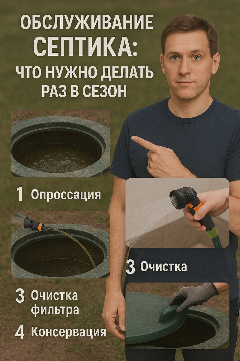 🛠️ Если вы не хотите столкнуться с засорами, неприятным запахом, переполнением или даже аварией на участке — обслуживайте септик по сезону, как это делают опытные домовладельцы.