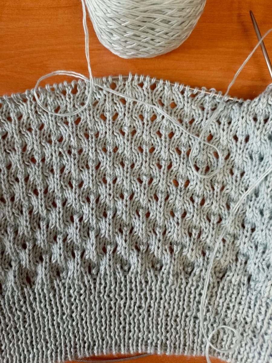 Начало нового проекта. Все таже пряжа👌☺️ . Резинка пляшет💃 надеюсь после ВТО будет ровнее. По этой причине не вязала резинку у предыдущей футболки. #футболка #футболка@spitcaikruchok #все связано #хлопокшелккашемир