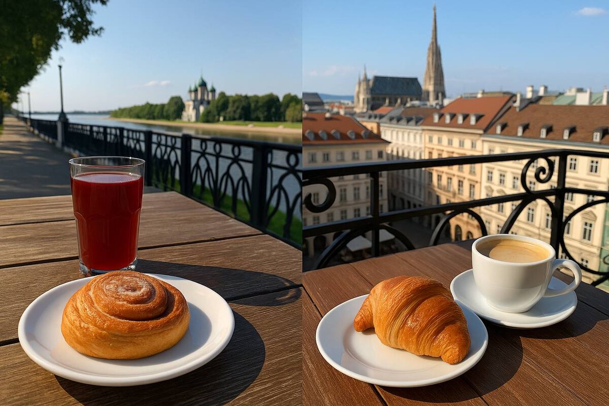 Вена — совсем другое кино. Здесь булочка подаётся на фарфоре, официант поправляет манжет, и ты уже не просто ешь — ты участвуешь в гастрономическом спектакле. Вкус — тонкий, тесто — многослойное, и всё под меланж с воздушной пенкой.
