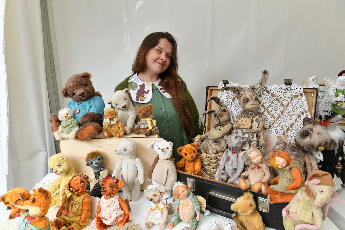 На стенде Екатерины Экономовой из Уфы царит особая атмосфера — будто попал в бабушкин чулан, где каждая игрушка хранит свою историю. На стенде Екатерины Экономовой из Уфы ощущается особая атмосфера — как будто ты попал в бабушкин чулан, где каждая игрушка скрывает свою уникальную историю. Автор создает неповторимые куклы в стиле состаренного винтажа, и каждая из них уникальна. Секрет «старости» кукол кроется в особой технологии: пчелиный воск, древесные опилки, ручная набивка и искусственные потертости. — Вот этого медведя я специально «испортила» воском, — с улыбкой говорит мастерица. Главной звездой коллекции стала кукла Моль, которая «не замужем». — Она ждет своего жениха, — рассказывает Екатерина. — И, кажется, у Моли сегодня появился шанс: посетители выставки не могут пройти мимо ее трогательного образа. Она обязательно дождется своего суженого! Каждая кукла имеет свою историю, которую Екатерина описывает на своей странице ВКонтакте. Например, одна из коллекций посвящена военному
