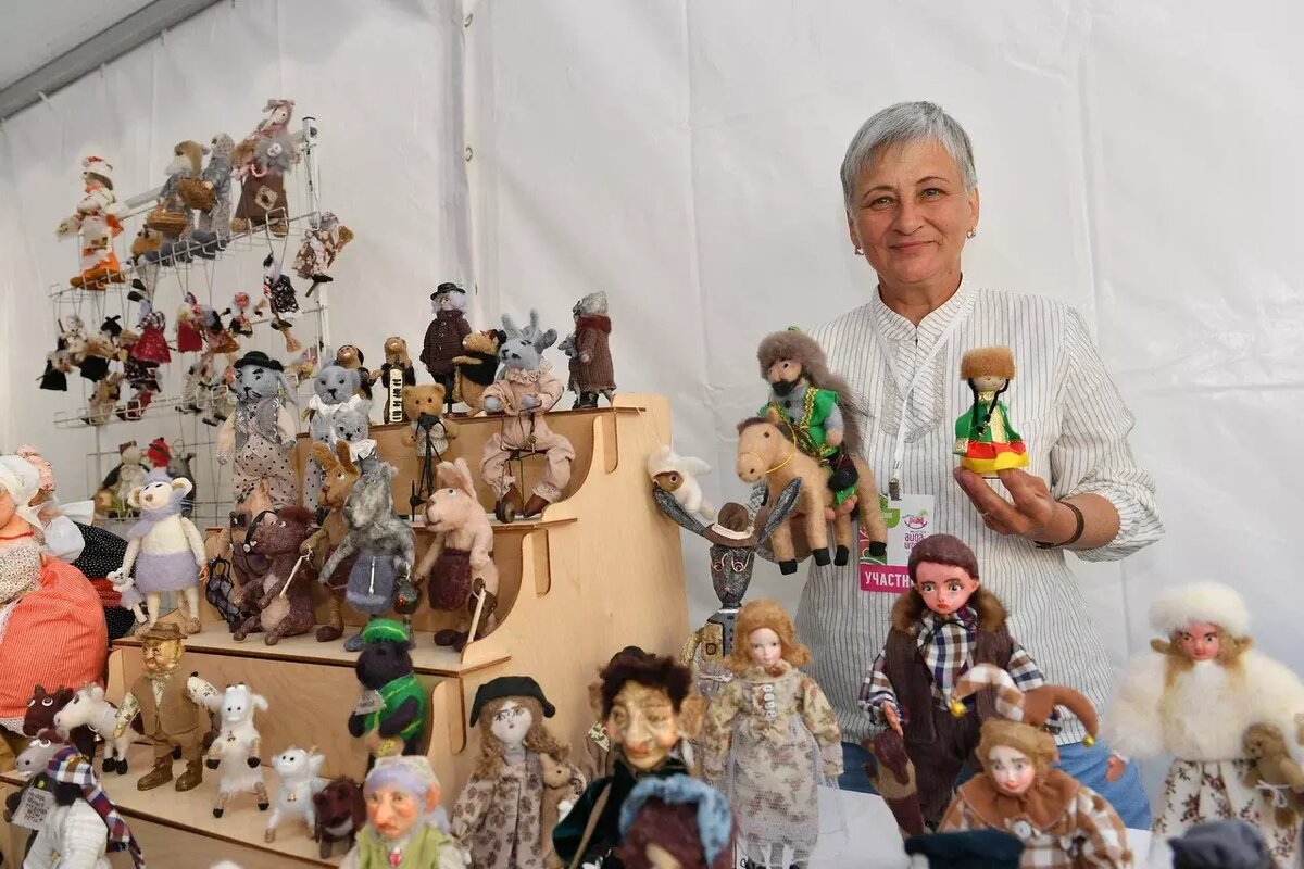 Татьяна Афлитонова из Иглинского района представляет свою сувенирную коллекцию на фестивале «Айда играть». Башкирская кукла Гюзель стала известной во всем мире. Большую партию отправили в китайский Сиянь. Татьяна признается, что ей приятно, когда ее узнают именно по этим куклам. Хотя Гюзель создана как сувенир и не предназначена для игр, она доставляет радость детям. Важно, что куклы изготовлены из экологически чистых материалов: натурального дерева, войлока и ткани. Татьяна увлеклась этим хобби с шести лет. До пандемии она создала более 500 кукол Тильда, которые заказывали даже в Париже. Затем наступил полуторагодовой перерыв, но три года назад она вернулась к творчеству с новыми силами. Ее работы получили признание на нескольких крупных выставках, что вдохновляет ее еще больше. Особенно Татьяна любит создавать интерьерных кукол. В одной работе она может использовать от 10 до 20 различных техник. Куклы Татьяны Афлитоновой находятся в частных коллекциях. Ее козлик Белекес, изготовленны