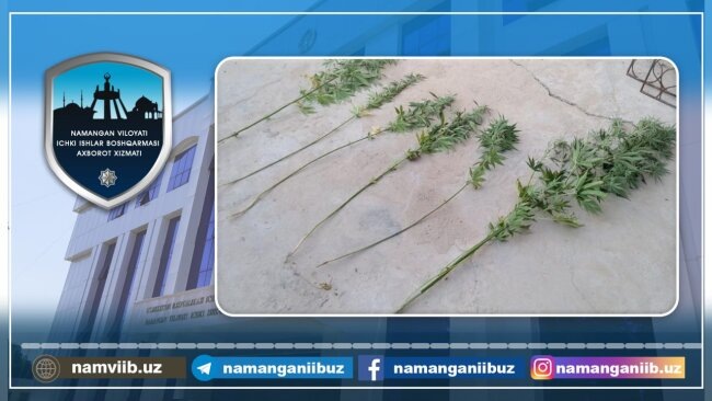 Сотрудниками Чустского районного отдела внутренних дел было проведено оперативное мероприятие. В ходе мероприятия было установлено, что житель махалли "Говасай" Чустского района, 1988 года рождения, выращивал наркотикосодержащие растения в поле, расположенном в махалле "Агасарой" Чустского района. Отмечается, что данный земельный участок также принадлежит ему. При осмотре поля было выявлено, что среди других растений выращивались 12 кустов каннабиса. Все они были изъяты, в качестве вещественных доказательств.