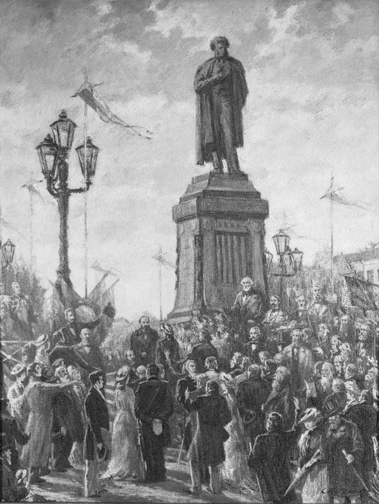 В день открытия памятника Пушкину, 6 июня 1880 года, с 10 часов утра в Москве к площади у Страстного монастыря стали стекаться толпы народа и многочисленные экипажи. Вокруг площадки памятника на шестах были установлены белые щиты с вытесненными золотом названиями произведений великого поэта. Тверской бульвар украсили гирляндами живой зелени. Народ раскупил у торговцев все ландыши и фиалки и забрасывал ими пьедестал монумента.