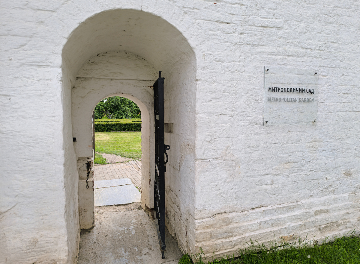 С утра обещали дождь с грозой на весь день... Куда ж меня опять несёт? А в Ростовский кремль. Случилось чудо, днём тучи рассеялись, выглянуло тёплое июньское солнышко и позволило сполна насладиться красотой древнего города. В этой статье расскажу об одном из его райских мест. Пройдём же за калитку... Митрополичий сад разбит около южной стены Ростовского кремля аж со времён митрополита Ионы Сысоевича. Формировался он много десятилетий, а затем пришёл в упадок. Лишь в 1990-е сад был восстановлен с помощью старинных документов на том же месте. Считается, что сейчас он повторяет тот Эдем, который здесь заложили в 17 веке. Интересно, что это единственная в нашей стране реконструкция средневекового сада архиерейской резиденции. Научное обоснование реконструкции и его воплощение было выполнено благодаря историку А.Г. Мельнику. При реконструкции сад сохранил крестообразную планировку древнего Митрополичьего сада. Здесь создавался земной прообраз райского сада из священного писания. Фруктовые д