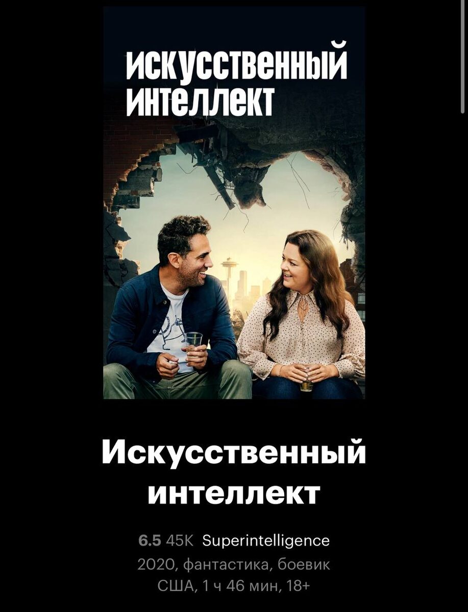 решила прошерстить свои фильмы из закладок) сегодня выбор пал на «искусственный интеллект», 20 года, про то как ии выбрал обычную женщину в качестве образца для наблюдения за человечеством и в зависимости от ее поведения ии решит уничтожать ли людей или оставить) и мелисса маккарти такая хорошенькая здесь с таким вайбом дженнифер лопез из «если свекровь - монстр»)