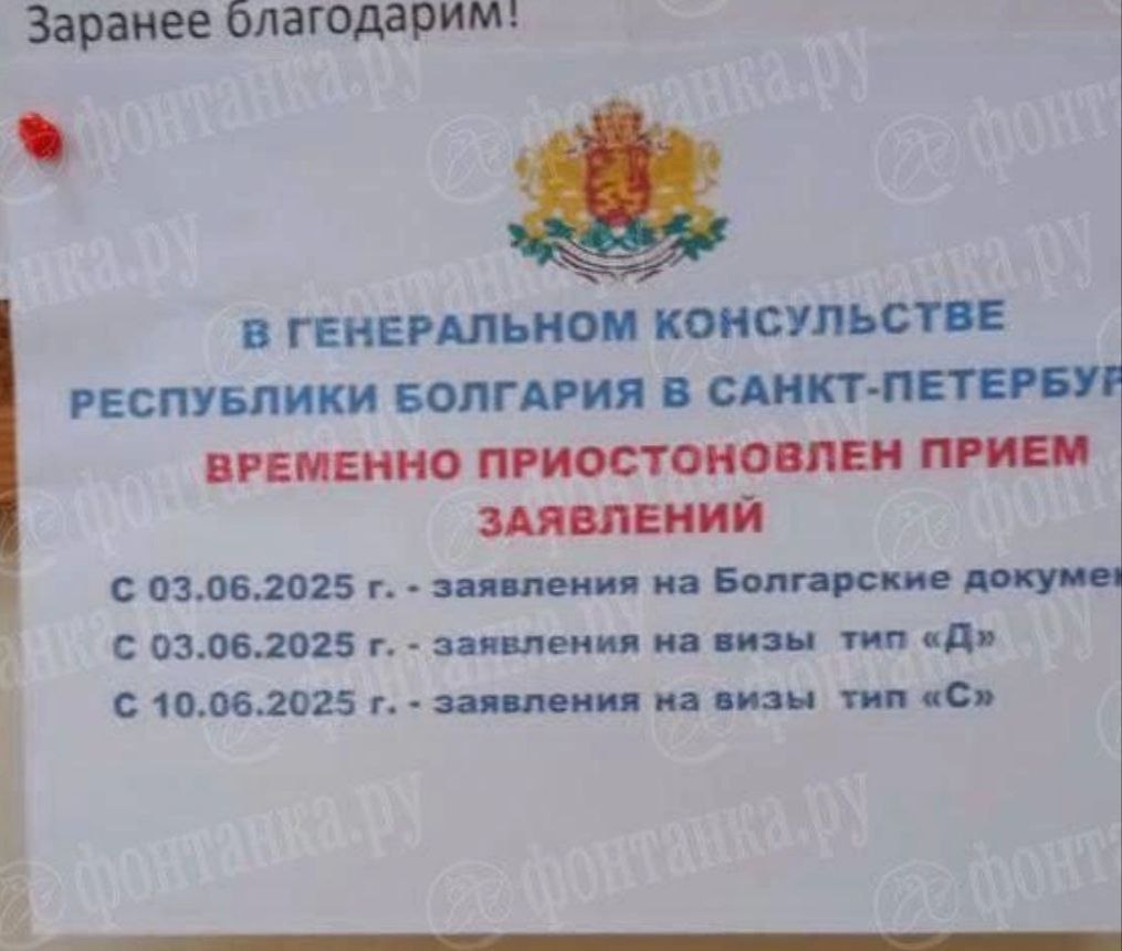 ❗В Генеральном консульстве Болгарии в Санкт-Петербурге действует временное ограничение на прием заявлений