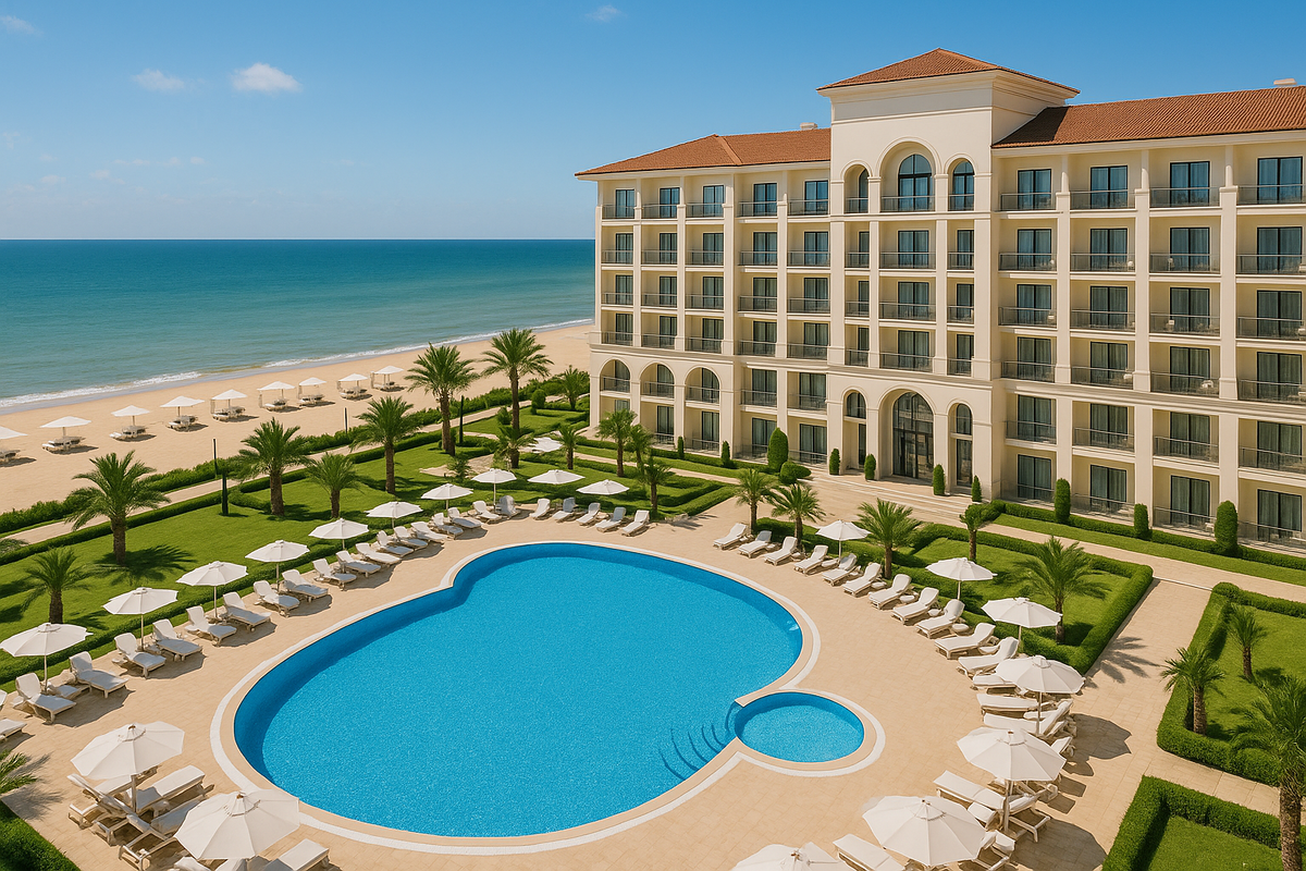 - Как выбрать лучший отель на Азовском море 5 звезд? Обращайте внимание на инфраструктуру, близость к пляжу и средний рейтинг выше 8.5 из 10.