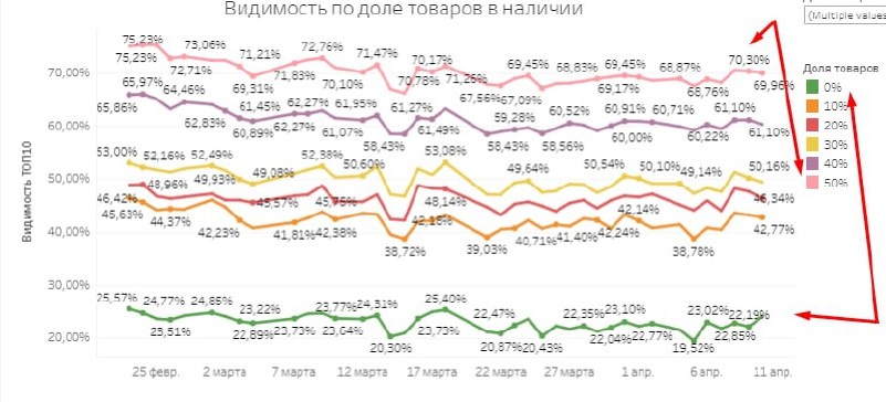 Доля товаров в наличии 📊📈 Короткий пост-ответ на запрос подписчика о том, как влияют товары не в наличии на видимость в ПС. На скриншоте видим прямую корреляцию доли товаров в наличии на первой странице листинга и ранжирование в ТОП10 ПС - чем выше доля, тем выше позиции. Почему это важно: ✔️ Показывается большее количество "живых" карточек — значит, больше шансов, что покупатель найдет нужное. ✔️ Страницы с высокой долей доступных товаров получают лучшую поведенческую метрику — клики, время просмотра, взаимодействия. ✔️ ПС считает, что магазин активно работает и предлагает актуальный ассортимент. Если вас интересует более детальный разбор кейсов и методы решения проблем, ставьте 👍 *проект/категория/группа/выборка документов со скриншота не уточняется - NDA 😏