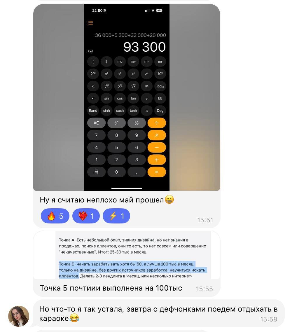 Я весь в проектах настолько, что не успеваю тут особо таким делиться, но постараюсь исправляться по чуть чуть (хотя подобных скринов у меня постоянно прибавляется @languev_otzivi) Делюсь с вами крутым кейсом Вики, она почти выполнила свою цель на обучение — сделать первые 100к, а это была только середина программы 💪