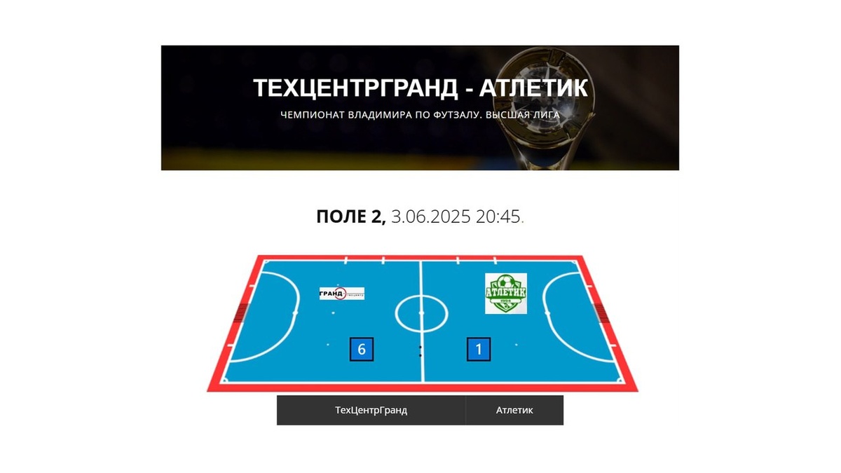 Чемпионат Владимира по футзалу. Высшая лига. 03.06.2025 г. ТехЦентрГранд - Атлетик 6:1 (2:1) Обзор