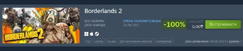 ❗️Borderlands 2 в Steam теперь можно бесплатно забрать с любого региона