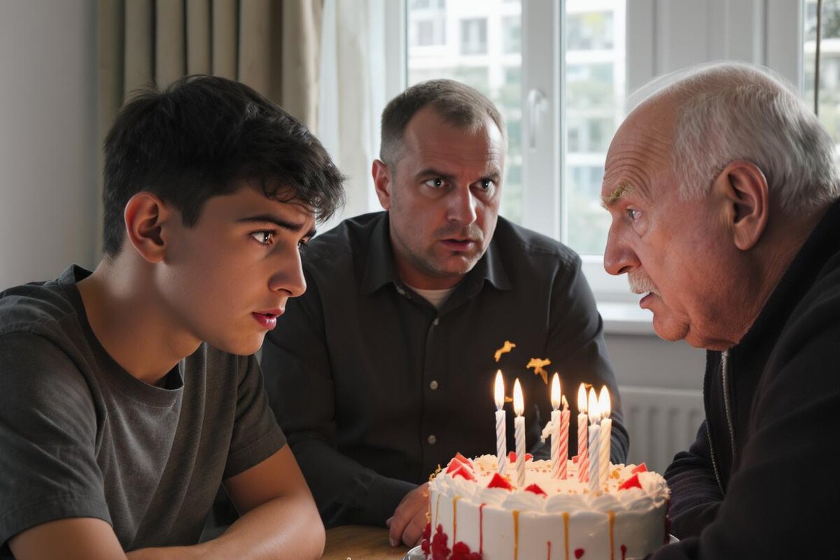 В этот момент двери распахнулись, и в комнату вошел Костя, бережно неся огромный пирог с горящими свечами. За ним семенила бабушка, Анна Сергеевна, с тревогой поглядывая на напряженные лица собравшихся.