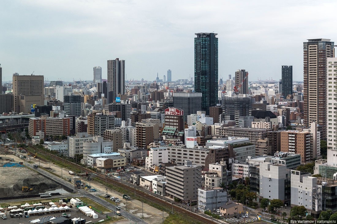 16. Центральный вокзал Киото. С воздуха не совсем понятно, но оно просто гигантское. За ним стоит Киотская телебашня. Она довольно страшная, и ее многие ненавидят и хотят снести.