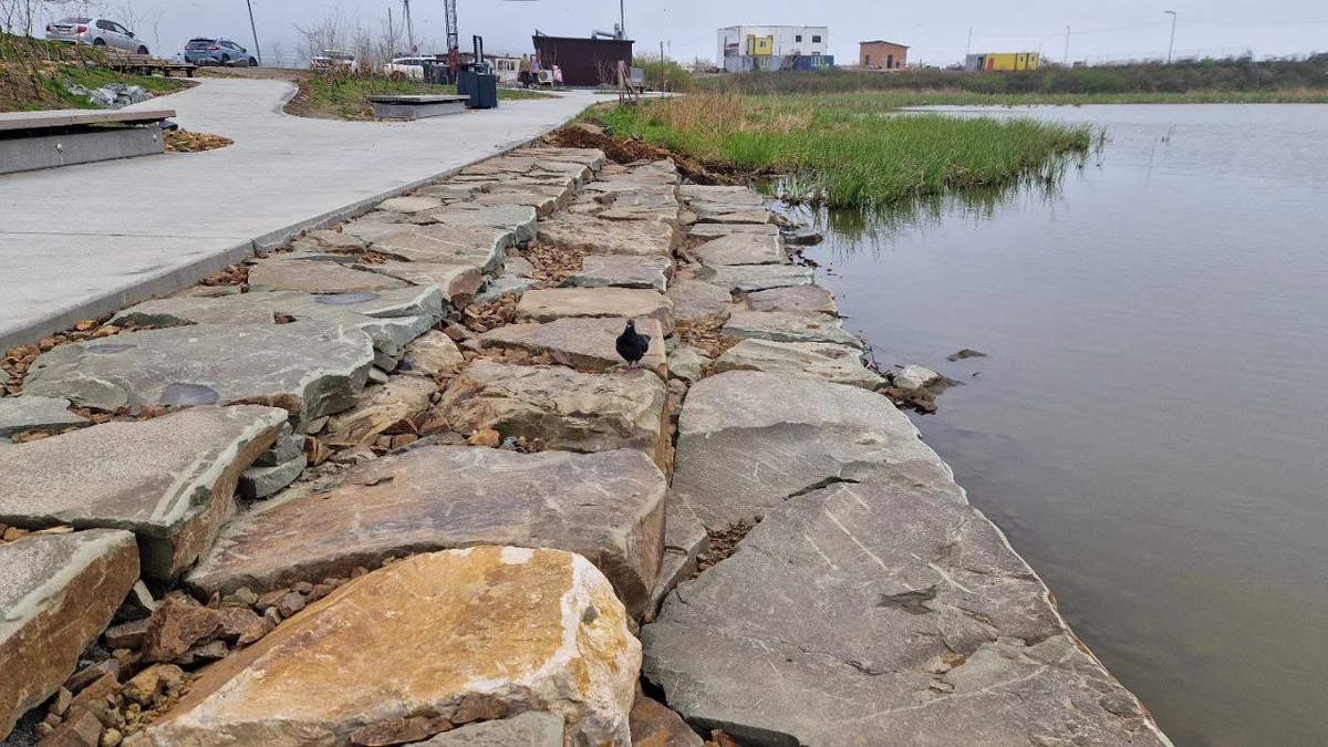 Природный камень в благоустройстве - это прекрасно! У озера на Патрокле сложили пазл в виде ступенек к кромке воды