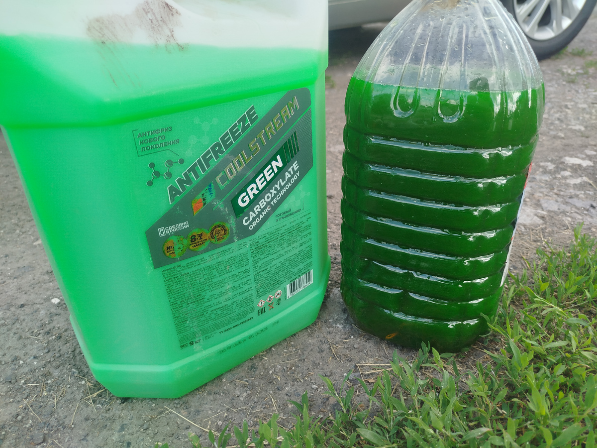 вот и пролетело время... Менял антифриз не так вроде и давно, но проехал уже 80 000км. Решил заменить его еще разок, выбор пал опять на Антифриз готовый CoolStream , карбоксилатный зеленый Green G-11 Он себя хорошо показал в данном авто.В итоге купил 9кг канистру, и залил половину, слилось с авто примерно 4 литра +/-. Теперь на тыс 80-90 км можно забыть про него )))