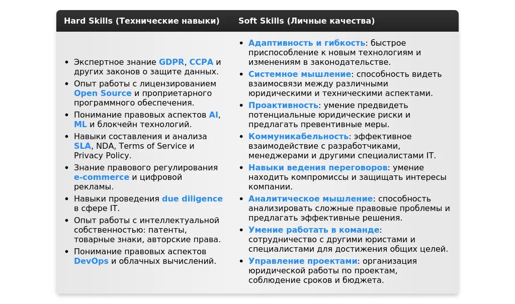 Ключевые навыки и компетенции, релевантные для позиции юриста в IT.