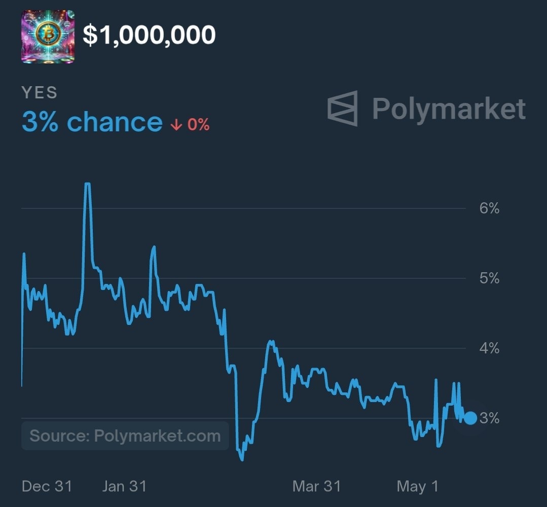 💰🚀 According to Polymarket, there’s a 3% shot that Bitcoin could skyrocket to $1M this year