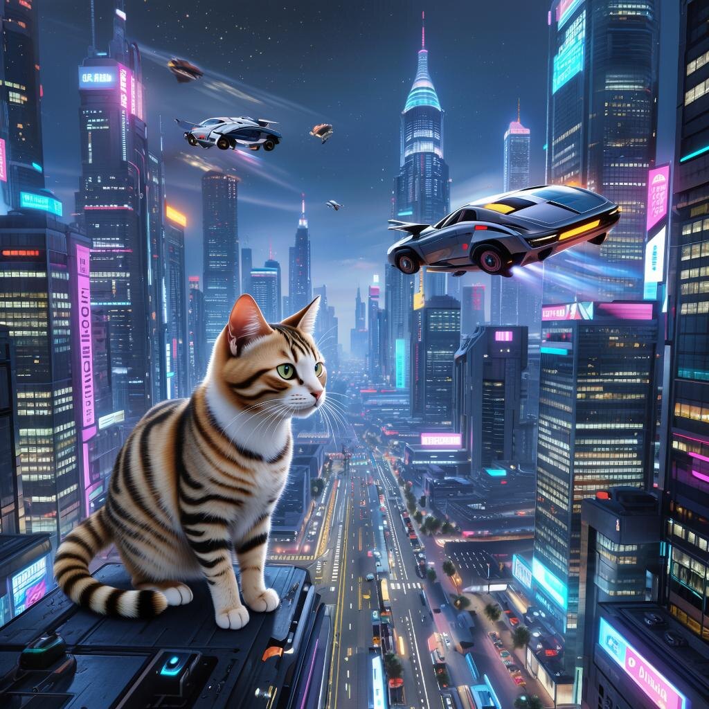 В огромном городе, сверкающем миллионами огней, жил необыкновенный кот по имени Котик. Глаза его мерцали мягким зеленым свечением, отражающим яркие рекламы. Знал он город лучше любого картографа, чувствуя каждый звук и вибрацию.