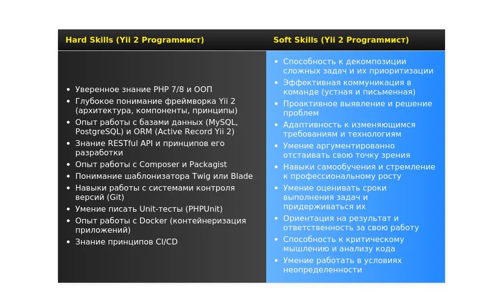 - Точность: Избегайте общих формулировок вроде "Программист" или "Web-разработчик". Укажите конкретно "Yii 2".