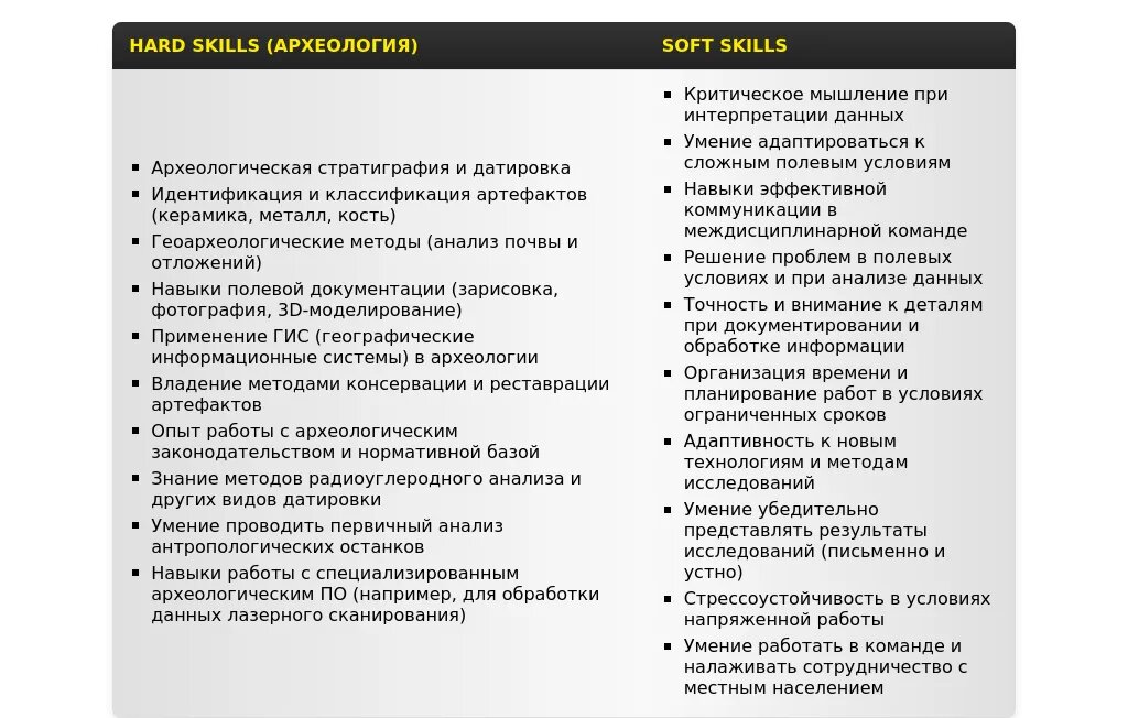 - Ошибка 1: Слишком общие фразы."Ответственный, исполнительный, быстро обучаюсь.""Обладаю опытом полевых археологических исследований, включая раскопки и документацию находок. Владею навыками работы с георадаром и GPS-оборудованием."