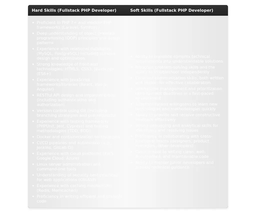Изучение примера резюме fullstack PHP developer'а — ваш самый быстрый путь к созданию действительно эффективного документа, который привлечет внимание работодателя.