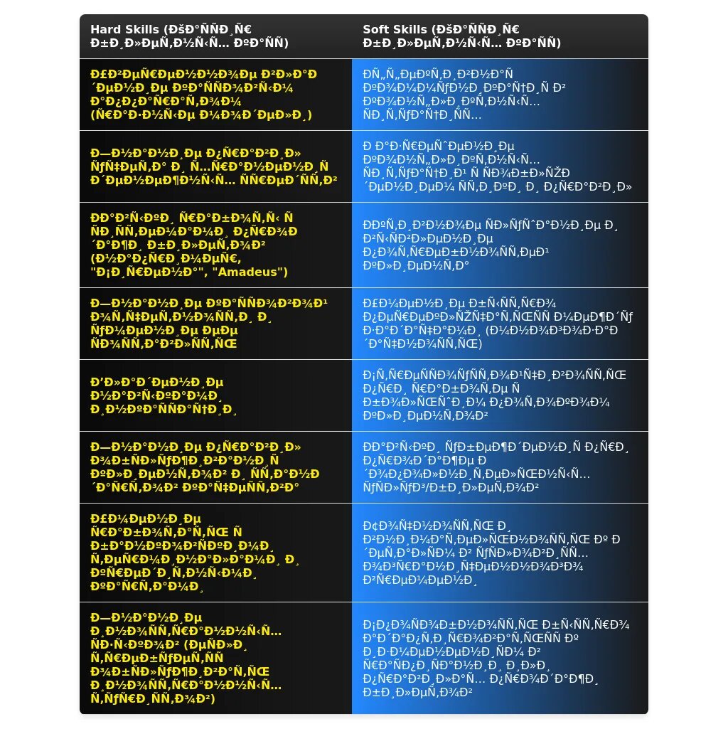 Раздел "Навыки" - это ваш шанс показать работодателю, что вы обладаете всеми необходимыми компетенциями для успешного выполнения работы. Важно адаптировать этот раздел таким образом, чтобы он соответствовал требованиям конкретной вакансии.