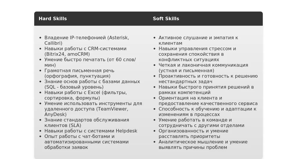 Скрытые требования: Вероятно, важна скорость обработки звонков и умение решать проблемы клиентов.