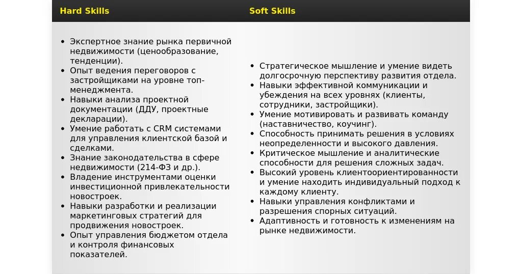 Адаптация раздела "Навыки" для руководителя отдела новостроек